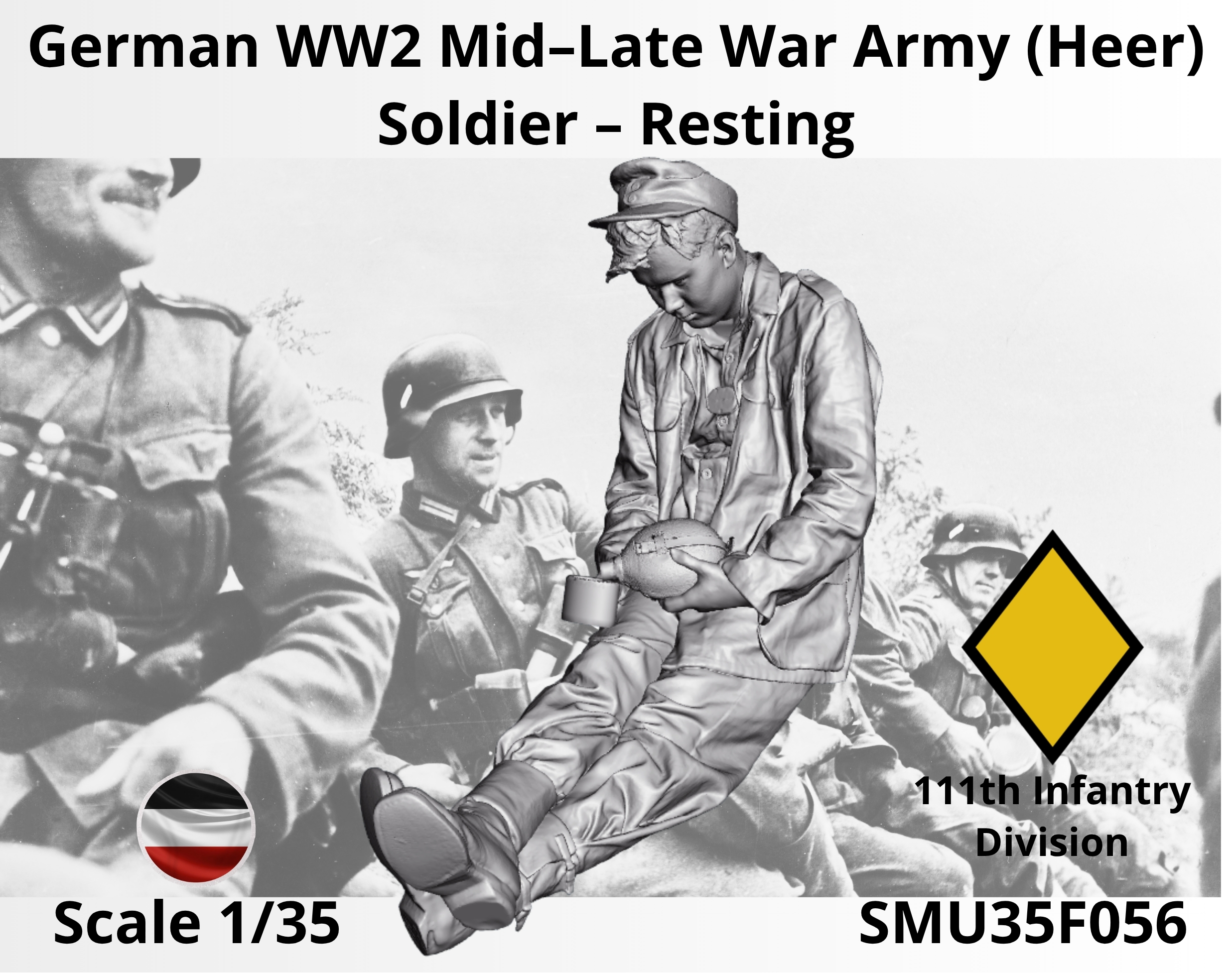 3D printed 1/35 scale German WW2 Mid–Late War Army (Heer) Soldier – Resting 1/35