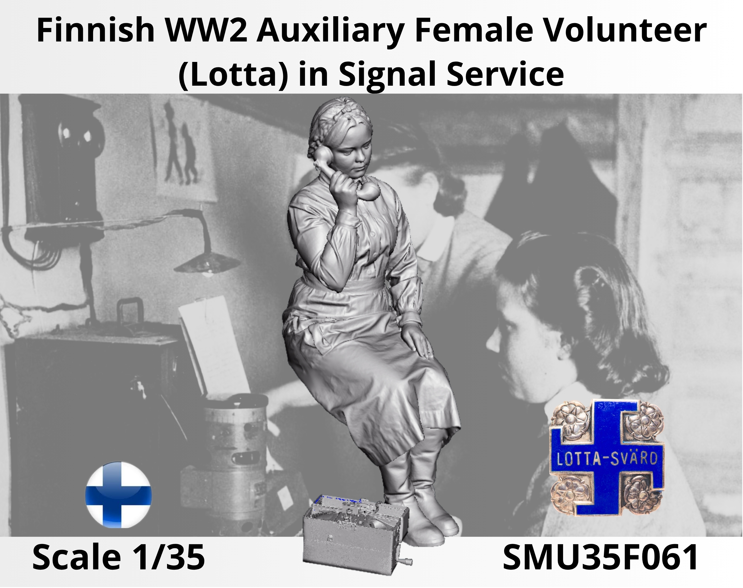3D printed 1/35 scale Finnish WW2 auxiliary female volunteer (Lotta) in signal Service 1/35